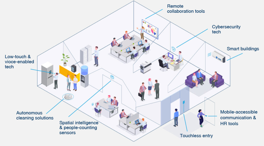 Our approach transforms workplaces into tech-driven hubs, enhancing work experiences through AI and IoT-driven automation.